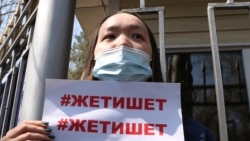 Бишкекте уурдалып, өлтүрүлгөн Айзада Канатбекованын өлүмүнөн кийин 15-апрелде аял укугун коргоону талап кылып чыккан активисттерди белгисиз топ Ички иштер министрлигинин алдынан сүрүп чыгарышты.