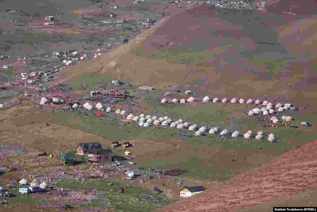 Чуңкурчакта каз-катар тигилген боз үйлөр