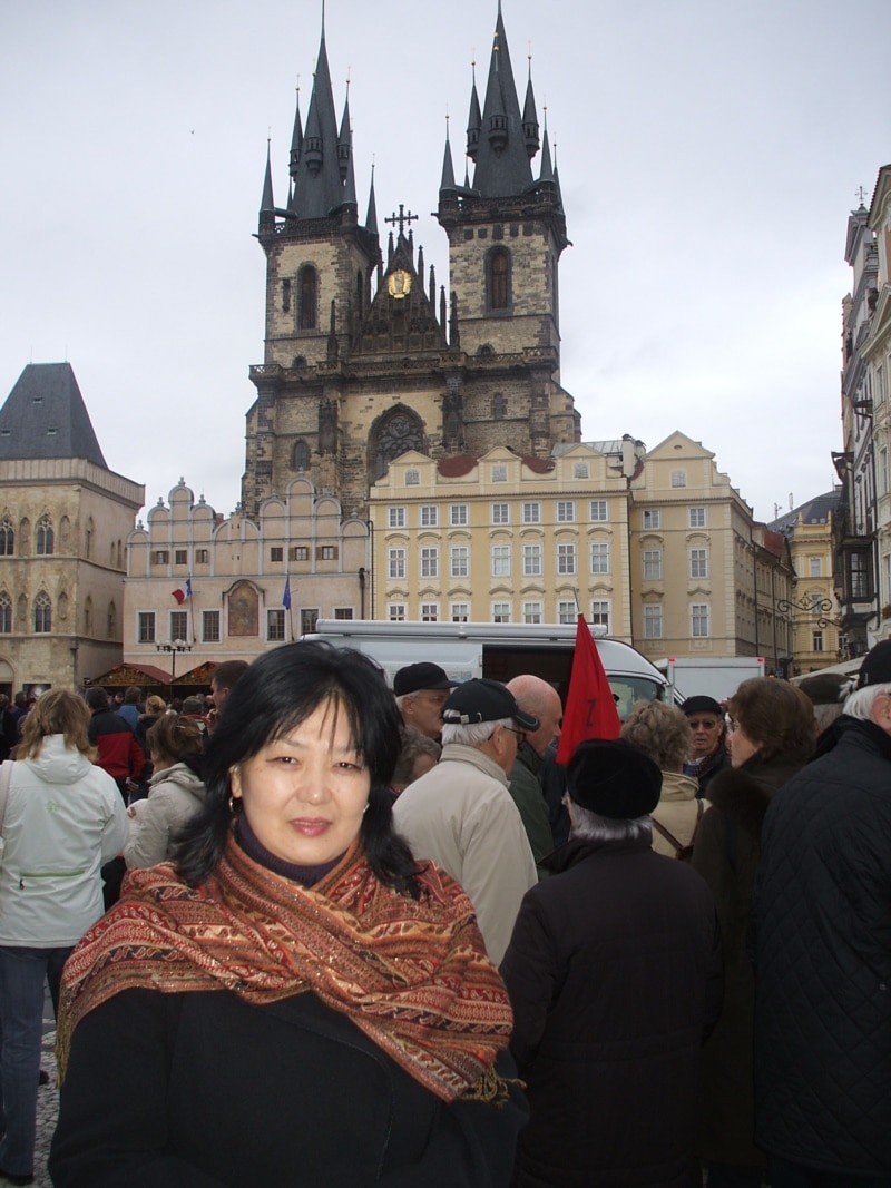 Гүлнара Арыкбаева, Италиянын Неапол шаарындагы "Манас" маданий жамаатынын (ассоциациясынын) жетекчиси, Прага шаарындагы айтылуу Эски шаарда. 2008-жылдын 16-ноябры. ТЧ. "Азаттык" үналгысы.