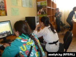 Кыргызстанда чет тилдерге кызыккан жаштардын саны артып барат. Билим берүү борборунда англисче TOEFL сынагына даярдоо сабагына катышып жаткан кыздар. Нарын ш., 2011-ж.